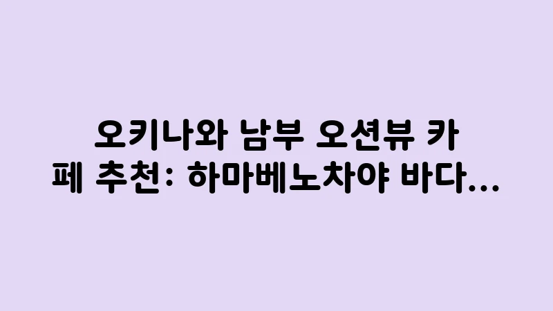 오키나와 남부 오션뷰 카페 추천 베스트! 하마베노차야 바다 보며 차 한잔하는 명당자리 예약 팁과 함께 조용하고 고즈넉한 남부 해변 카페들을 분석했습니다. 힐링과 사색을 위한 완벽한 남부 오션뷰 로드맵입니다. , 이어서