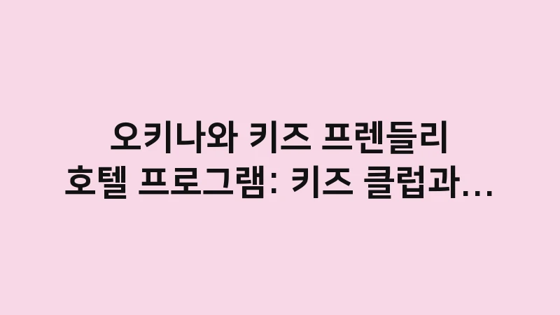 오키나와 키즈 프렌들리 호텔 프로그램: 키즈 클럽, 유아 풀, 그리고 체험 활동의 종류와 비용을의 깊이로 비교 분석합니다. 아이의 만족도를 극대화하는 리조트 프로그램 선택 가이드를 제시합니다. , 이어서