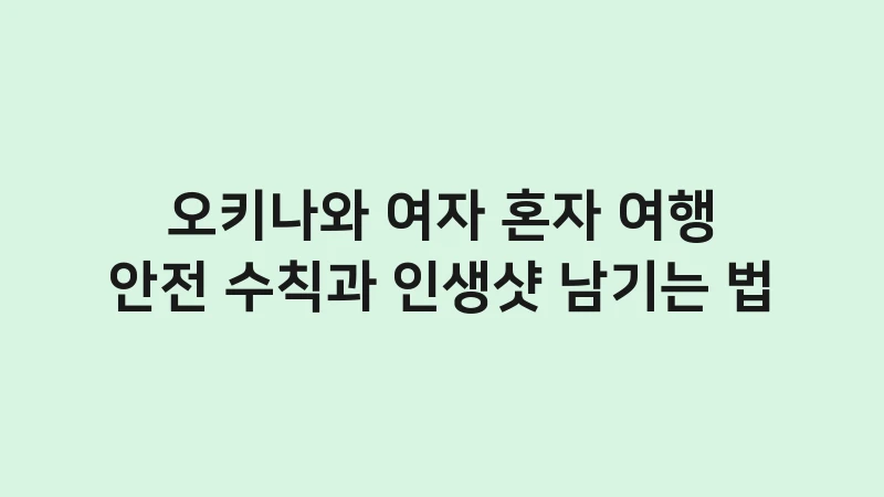오키나와 여자 혼자 여행 안전 수칙과 인생샷 남기는 법을 총정리했습니다. 밤거리 골목길 주의사항부터 숙소 위치 선정 팁, 삼각대 없이 혼자 인생샷 찍는 노하우까지으로 깊이 있게 분석했습니다. 안전하고 아름다운 추억을 만드세요. , 이어서