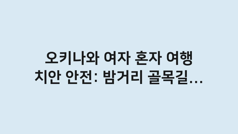 오키나와 여자 혼자 여행 치안 안전 가이드! 밤거리 골목길 주의사항, 우범 지역 피하는 법, 숙소 위치 선정 팁 등 나홀로 여행자를 위한 필수 안전 정보를 총정리합니다. , 이어서