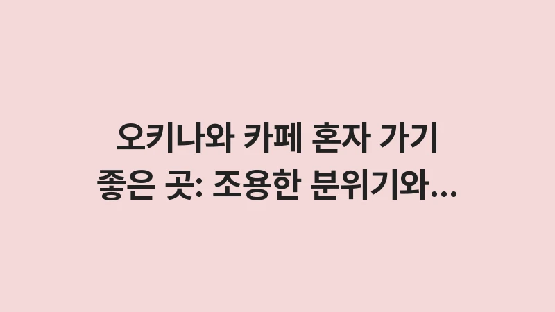 오키나와 카페 혼자 가기 좋은 곳만 엄선했습니다. 조용한 분위기 속에서 바다 뷰를 즐길 수 있는 명소와 1인 좌석이 잘 갖춰진 카페 리스트를으로 깊이 있게 분석했습니다. 힐링을 위한 완벽한 공간을 찾아보세요. , 이어서