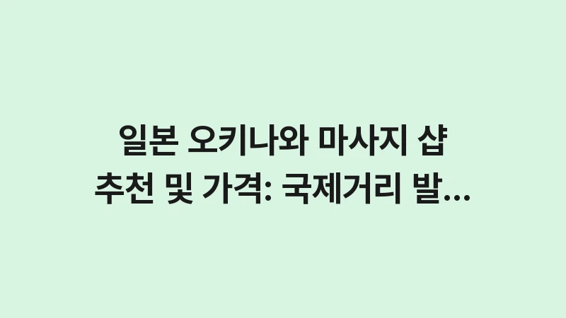 일본 오키나와 마사지 샵 추천 및 가격 총정리: 국제거리 가성비 발 마사지, 전신 관리 비용, 럭셔리 리조트 스파와의 차이점 등 여행 피로를 풀기 위한 모든 정보를 상세히 비교했습니다. , 이어서