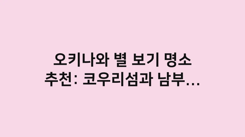 오키나와 별 보기 명소 추천 TOP 3: 코우리섬 대교, 남부 해안, 얀바루 숲에서 즐기는 밤하늘 가이드를 총정리했습니다. 은하수 관측 최적 시기, 준비물, 별 사진 촬영 팁까지 공개합니다. , 이어서