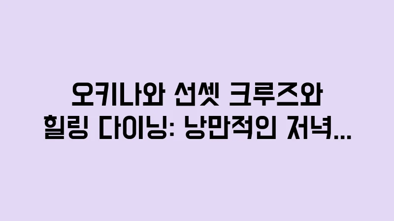 오키나와 선셋 크루즈와 힐링 다이닝을 즐기는 낭만적인 저녁 식사 가이드입니다. 석양을 보며 즐기는 최고의 코스와 예약, 준비물 팁을 알려드립니다. , 이어서