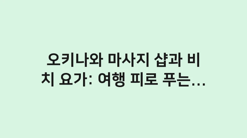 오키나와 마사지 샵과 비치 요가 완벽 가이드: 여행 피로를 푸는 웰니스 코스 추천과 가격대 비교를 통해 몸과 마음의 밸런스를 되찾으세요. 국제거리 발 마사지부터 힐링 요가 클래스까지 총정리했습니다. , 이어서