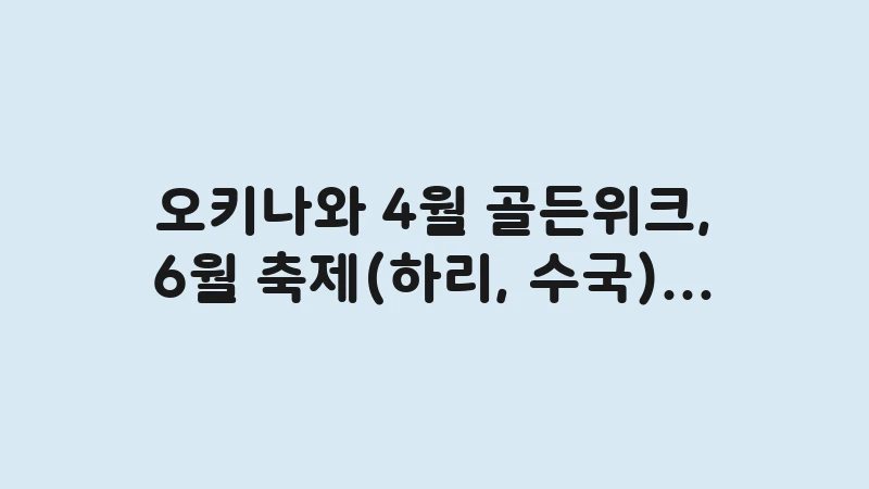 오키나와 4월 골든위크, 6월 하리 축제, 수국 축제 시즌별 여행 옷차림 코디 가이드를 제시합니다. 축제 인파 속에서 쾌적함을 유지하는 복장 팁과 일본 연휴 기간 혼잡을 피하는 노하우까지 포함했습니다. 오키나와의 특별한 축제를 완벽하게 즐기기 위한 준비를 지금 시작하세요. , 이어서
