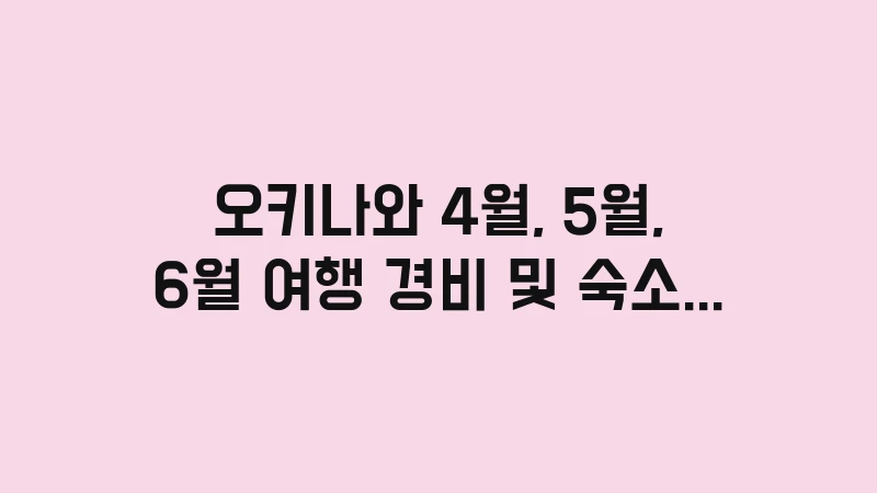 오키나와 4월, 5월, 6월 여행 경비 및 숙소 활용 팁을 제시합니다. 월별 예상 항공권, 숙소 비용과 함께 5월 장마철 숙소 선택 기준(제습 기능), 그리고 리조트와 에어비앤비의 장단점을 상세하게 분석합니다. 경제적이면서도 쾌적한 오키나와 여행을 위한 경비 및 숙소 가이드를 확인하세요. , 이어서