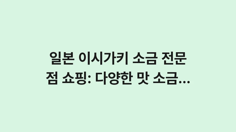 일본 이시가키 소금 전문점(마스야) 쇼핑 완벽 가이드! 미네랄이 풍부한 이시가키 소금(Yukishio)의 특징, 인기 선물 세트 추천, 그리고 다양한 맛 소금(말차, 히비스커스) 시식 팁까지 알려드립니다. , 이어서