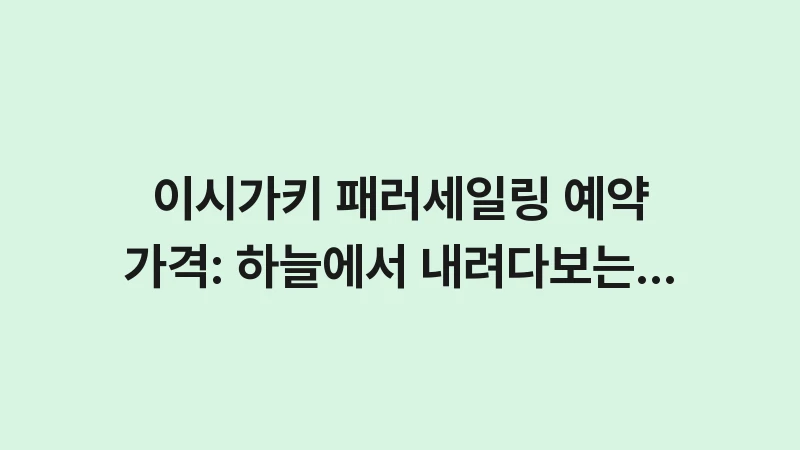 이시가키 패러세일링 예약 가격 및 투어 정보 총정리! 하늘에서 내려다보는 에메랄드빛 산호초 바다의 절경. 고소공포증도 극복 가능한 안전한 비행 체험 팁과 복장, 추천 시간대를 확인하세요. , 이어서