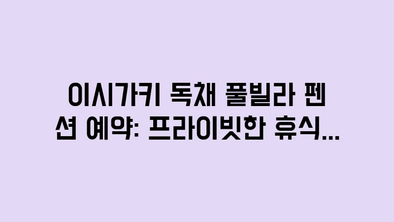 이시가키 여행, 우리끼리만 조용히 쉴 수 있는 독채 풀빌라를 찾으시나요? 프라이빗 수영장이 있는 감성 펜션부터 대가족을 위한 독채 숙소까지, 예약 팁과 추천 리스트를 정리했습니다. , 이어서