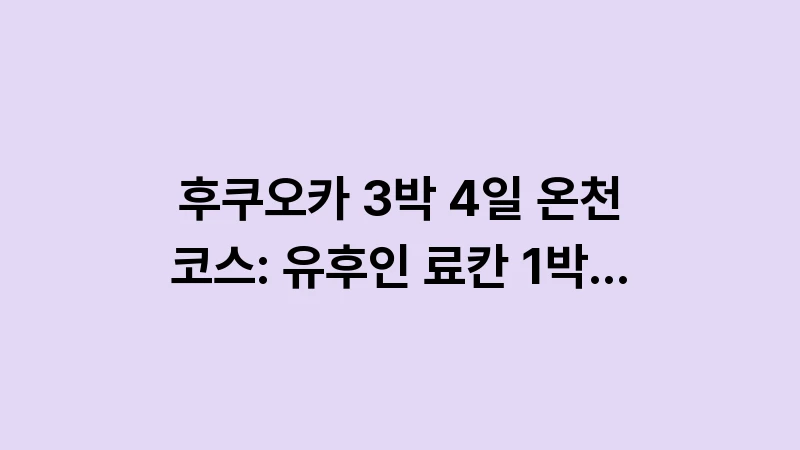 후쿠오카 3박 4일 온천 코스 정보를 찾으시나요? 유후인 료칸 1박을 포함한 가족 여행 예산과 부모님/아이 모두 만족하는 최적의 큐슈 온천 루트를 3,500자 분량으로 정리했습니다. , 이어서