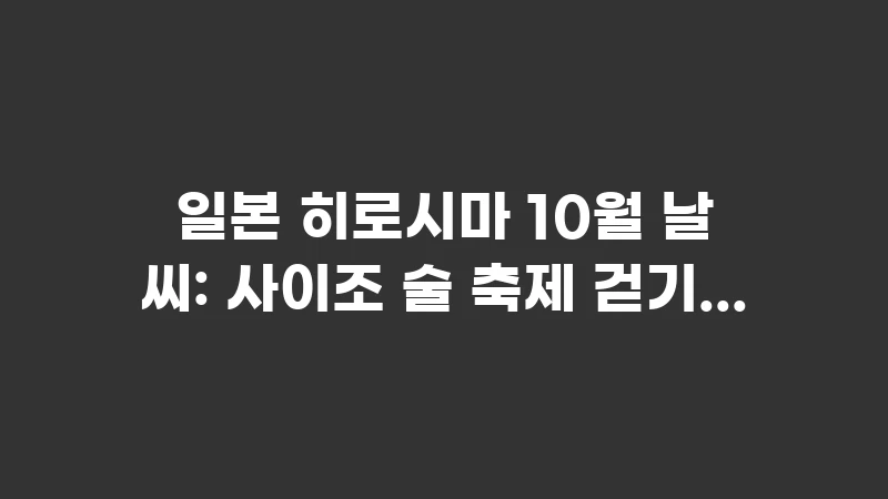 일본 히로시마 10월 날씨와 사이조 술 축제를 즐기기 위한 여행 팁을 총정리했습니다. 가을 맨투맨, 니트 코디법과 미식의 도시 히로시마를 200% 즐기는 법을 지금 확인하세요. , 이어서