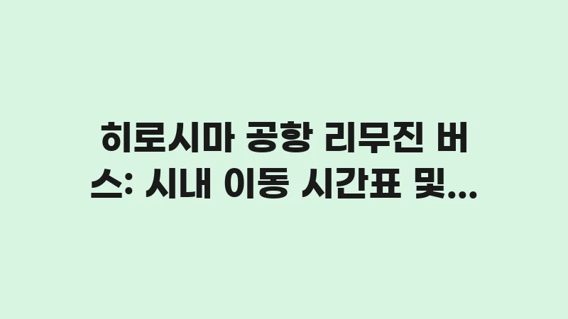 히로시마 공항 리무진 버스: 시내 이동 시간표 및 티켓 구매 (완벽 가이드)