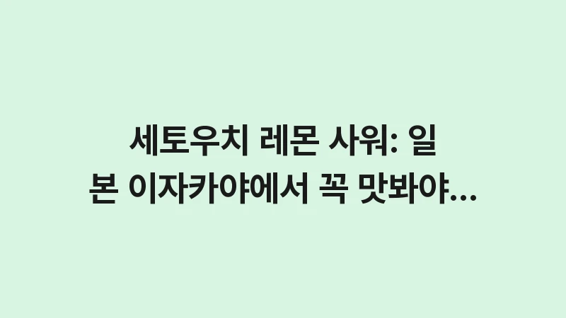 세토우치 레몬 사워, 히로시마 이자카야에서 놓쳐선 안 될 최고의 지역 술! 상큼한 풍미의 비결부터 레몬 사워를 가장 맛있게 즐기는 추천 안주 조합까지, 일본 여행의 갈증을 날려버릴 완벽 가이드를 공개합니다. , 이어서