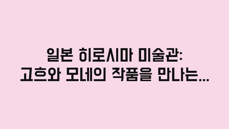 일본 히로시마 미술관에서 고흐와 모네 등 인상파 거장들의 명작을 감상하며 힐링의 시간을 가져보세요. 도심 속 정원 같은 미술관의 분위기와 관람 팁, 특별 전시 정보까지 2025년 최신 가이드를 통해 히로시마 예술 여행의 진수를 안내합니다. , 이어서