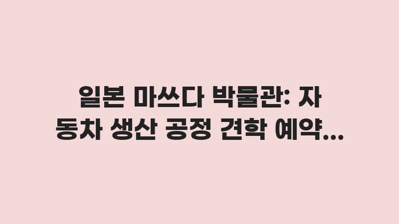 일본 마쓰다 박물관 견학을 통해 자동차 생산 공정의 생생한 현장을 체험하세요. 예약 방법부터 굿즈 구매 팁, 로터리 엔진의 역사까지 자동차 매니아라면 놓칠 수 없는 히로시마 이색 여행의 모든 것을 2025년 최신 정보로 안내합니다. , 이어서