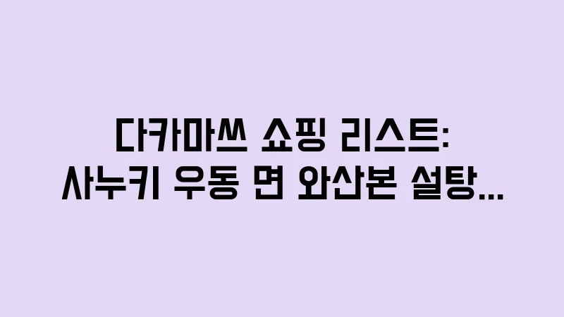 🏠 다카마쓰 쇼핑 리스트 핵심 관리 가이드