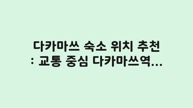 🏠 다카마쓰 숙소 위치 핵심 관리 가이드