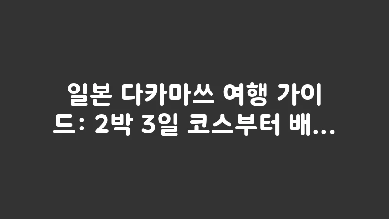 다카마쓰 여행 가이드에서 가장 중요한 것은 일정 배분입니다. 짧은 비행시간 덕분에 금요일 퇴근 후나 주말을 이용한 2박 3일 일정이 가장 대중적입니다. 이 기간에는 시내 중심의 관광과 섬 하나를 선택해 집중하는 것이 좋습니다.