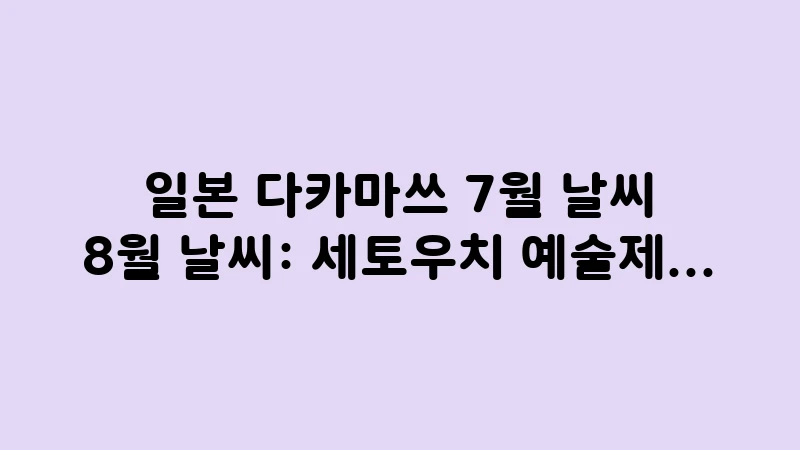 다카마쓰 7월 날씨 8월 날씨는 비록 가혹한 더위를 선사하지만, 그 무더위를 뚫고 만나는 예술 작품과 푸른 바다의 감동은 그 어떤 시련도 잊게 할 만큼 강렬합니다. 양산과 시원한 우동, 그리고 영리한 실내 위주의 동선 관리로 무장해 보세요. 한여름의 다카마쓰는 여러분께 가장 뜨겁고 찬란한 인생의 한 페이지를 남겨줄 것입니다.