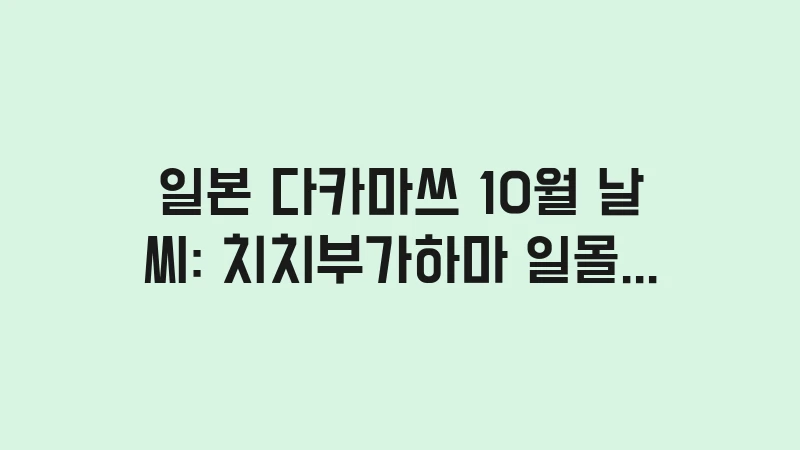 높고 푸른 하늘과 선선한 바람이 기분 좋게 뺨을 스치는 10월의 다카마쓰는 여행자들에게 가장 사랑받는 ‘골든 시즌’입니다. 일본 다카마쓰 10월 날씨는 덥지도 춥지도 않은 완벽한 쾌적함을 자랑하며, 야외 활동과 섬 투어, 미식 탐방을 즐기기에 이보다 더 좋은 때는 없다고 해도 과언이 아닙니다.