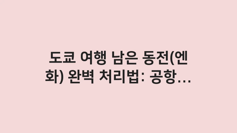 고지 문구: 본 글은 2025년 11월 기준으로 작성되었으며, 도쿄 여행 남은 동전(엔화) 완벽 처리법에 대한 개인적인 경험과 현지 정보를 바탕으로 합니다. 엔화 동전의 환전 및 사용 가능 여부는 점포와 환전소 정책에 따라 달라질 수 있으므로, 사용 전 현지에서 최종 확인하시기 바랍니다.