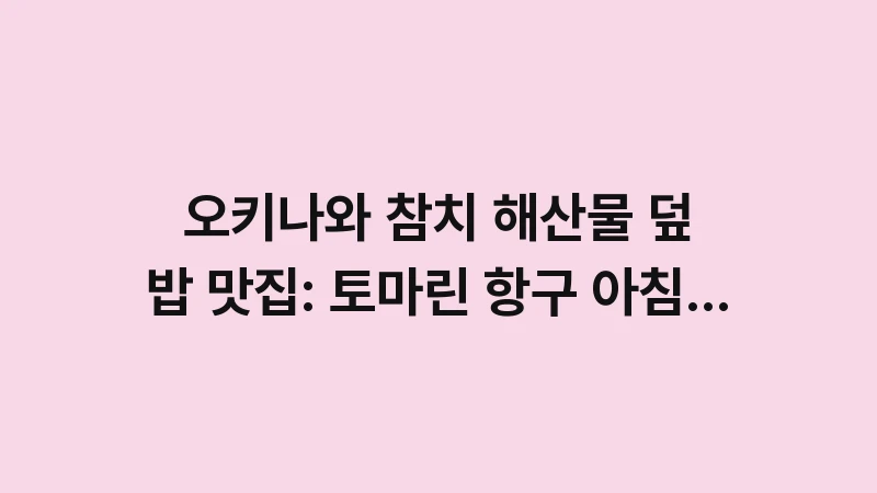 이 글은 토마린 항구 아침 식사 추천 메뉴참치 덮밥을 중심으로, 해산물 덮밥 맛집을 공략하는 노하우, 현지 참치의 종류와 특징, 그리고 토마린 항구 주변에서 가성비를 극대화하는 아침 식사 팁을 상세히 알려드립니다. 이 가이드와 함께 오키나와의 신선한 참치를 가장 저렴하게 즐겨보세요.