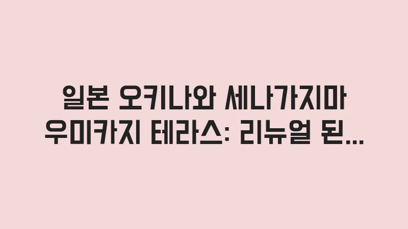 이 글은 오키나와 핫한 카페와 맛집: 오션뷰 카페부터 야장 술집까지의 하위 글로, 오키나와 미식 여행의 트렌디한 장소 중 공항 근처에 위치한 우미카지 테라스를 집중적으로 다룹니다. 일본 오키나와 세나가지마 우미카지 테라스는 효율성과 분위기를 모두 잡은 곳입니다.