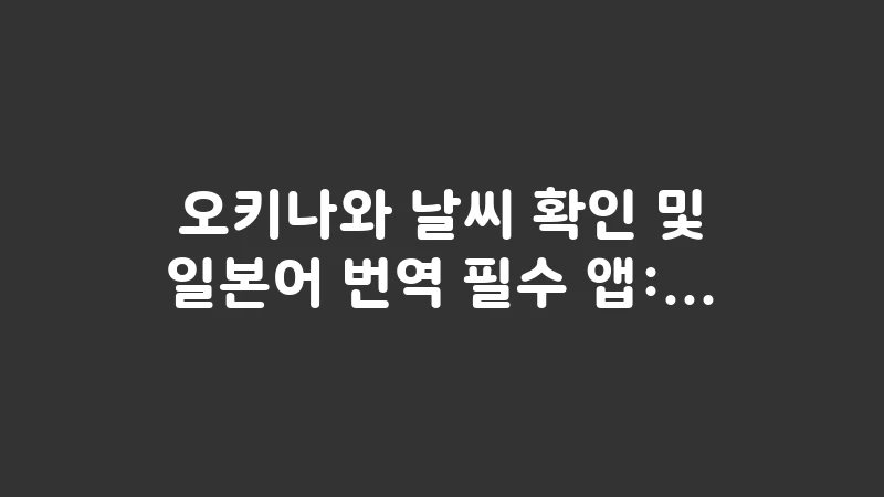 이 글은 오키나와 날씨 확인 및 일본어 번역 필수 앱에 대한 가장 깊이 있는 클러스터 메인 페이지이며, 이 모든 정보를 포괄하는 2026년 오키나와 여행 필수 어플 앱 추천: 지도부터 맛집 예약까지의 핵심 콘텐츠입니다.