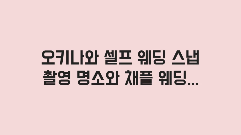 하지만 아름다운 사진을 얻기 위해서는 장소 선정, 시간대, 그리고 채플 웨딩의 복잡한 절차까지, 준비해야 할 것들이 많습니다. 5년 차 웨딩 콘텐츠 분석가이자 오키나와 전문 여행가로서, 당신의 웨딩 스냅과 채플 웨딩을 완벽하게 성공시킬 수 있는 핵심 정보를 지금부터 안내합니다.