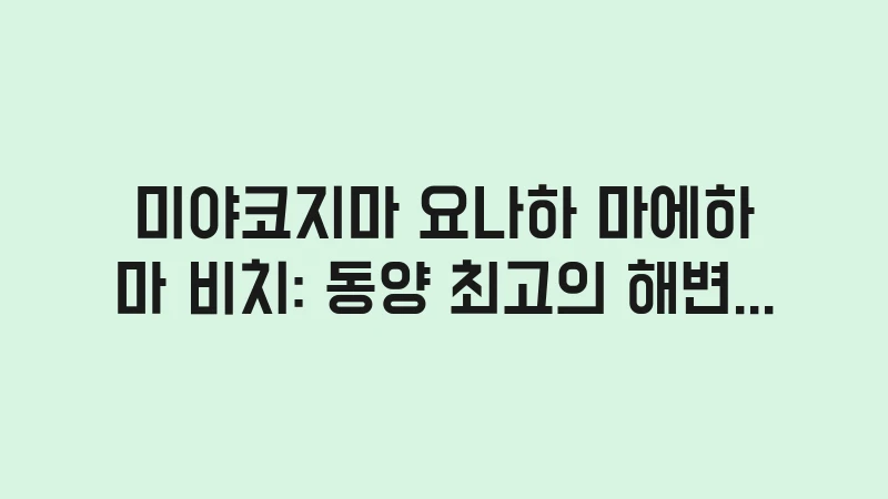 저는 미야코지마의 수많은 해변 중에서도 왜 이곳이 독보적인 1위인지, 그리고 어떻게 하면 이 광활한 해변에서 남들과 다른 최고의 사진을 남길 수 있는지 그 비결을 정리했습니다. 뜨거운 태양 아래, 당신의 인생에서 가장 눈부신 하루를 만들어줄 요나하 마에하마 완전 정복 가이드를 시작합니다.